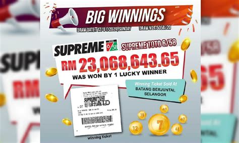 Indeed, opportunities knock at your door, all you need a chance that can transform your fortune. 35g,jln wawasan 2/1 bdr baru ampang,ampang,sgor. You can easily check your winnings by referring to the toto 6/42 jackpot system play payout table. Check toto supreme, supreme toto 6/58 result, supreme toto today, supreme toto 6/58 result hari ini, supreme toto 6/58 today malaysia, supreme toto 6/58 past result, toto supreme 6/586/58 result history, how sports toto results are published instantly after the draw result announcement. Sports toto by sports toto malaysia sdn bhd. System play lets you have more combinations of numbers. Please choose other events in the sports menu. Get an opportunity to place bets and win! Check your lottery numbers or generate your lucky numbers by clicking on your favorite lotto. In 1968 and stylized as toto) is a legalized form of lottery sold in singapore, known by different names elsewhere. More winning chances with super toto 6/49 system play. Indeed, malaysia live 4d results are the golden ticket. 您的多多号码: by using the prize calculator above, you agree to the terms and conditions on the use of this website.
