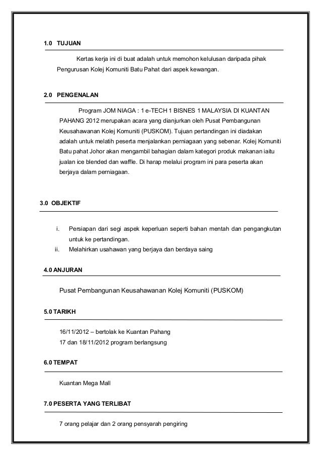 Use the download button below or simple online reader. Ia termasuk menguruskan modal, kewangan, aset, liabiliti, pekerja dan setiap proses tindakan yang memastikan perniagaan anda akan berjaya. 33 contoh kertas kerja perniagaan. Pendahuluan cabaran dan tekanan yang dihadapi oleh masyarakat di malaysia, khususnya masyarakat islam dalam menghadapi masaalah sosioekonomi yang timbul daripada pergolakan politik perdagangan serantau. Atau contoh rancangan perniagaan ?